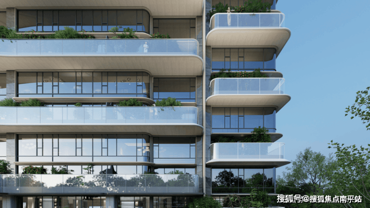 游艇甲板艺术造型:建筑立面汲取游艇甲板的层叠美学,搭配香槟金色金属线条,勾勒出灵动而富有张力的轮廓,宛如停泊于紫琅湖畔的奢华舰艇。