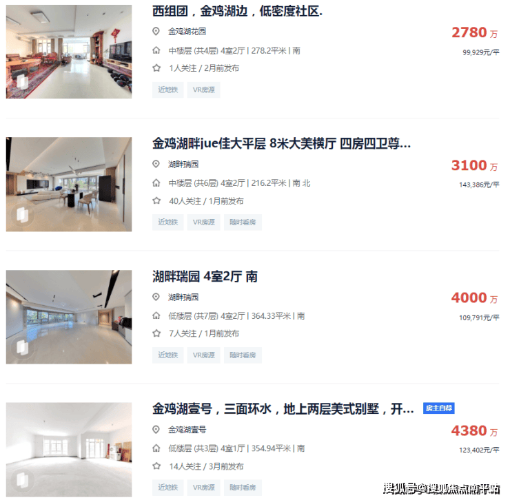 正如苏州标志性的金鸡湖,其一线湖景房源在二手房市场上已站稳3000万-4000万量级,但沿岸早已被高密度开发所主导,纯粹的低密临湖住区几乎成为历史。