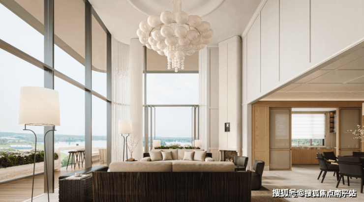 玻璃幕墙立面,最大化引入湖景与自然光。368㎡顶复户型更以“南通唯一270°无界观景”的姿态,将湖景作为客厅的天然背景。