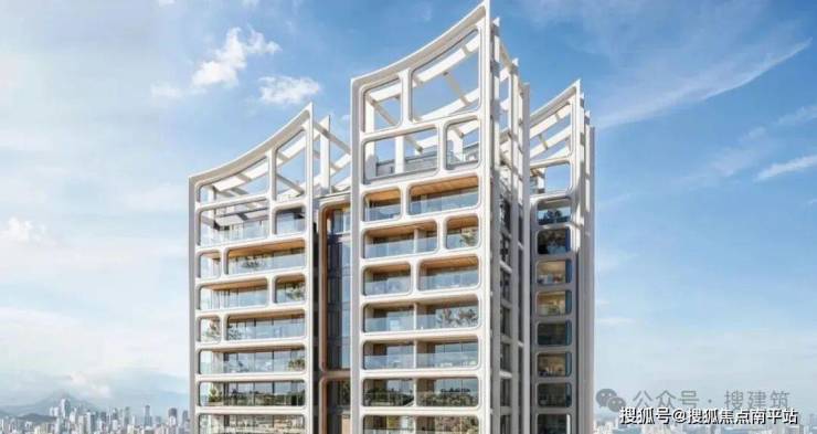 项目建筑由全国知名建筑设计事务所KPF总裁James von Klemperer亲自操刀,和line+联袂设计,五栋塔楼以 “月牙抱海”的姿态排布,高低错落,塔冠顶部以一抹优雅的 “微笑曲线”温柔环抱湾区,辨识度极高,重塑城市的天际线与气质。