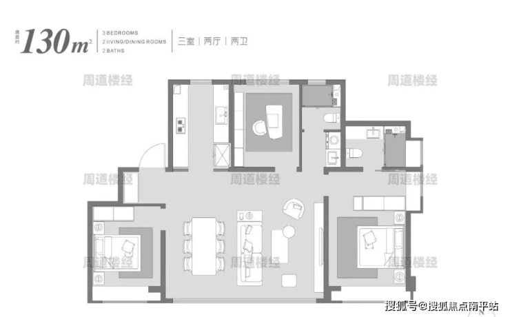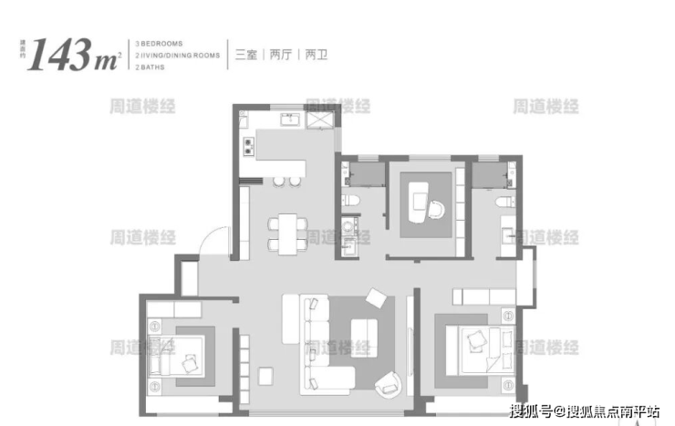 气度客厅 / 自在双厨 / 无边视界 / 私密格局 / 套房主卧