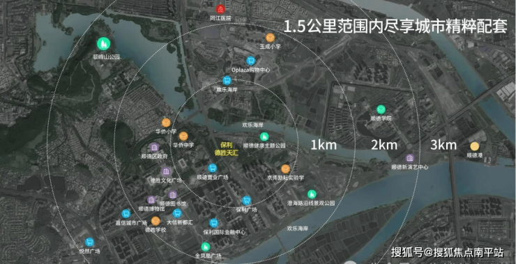 区府芯德胜新城,作为顺德的经济、政治、文化中心。保利德胜天汇屹立金凤凰中轴之上,坐享城市客厅“两心三馆”(顺德图书馆、顺德科技馆、顺德博物馆、顺德演艺中心、德胜体育中心)等地标建筑,远眺顺峰山。