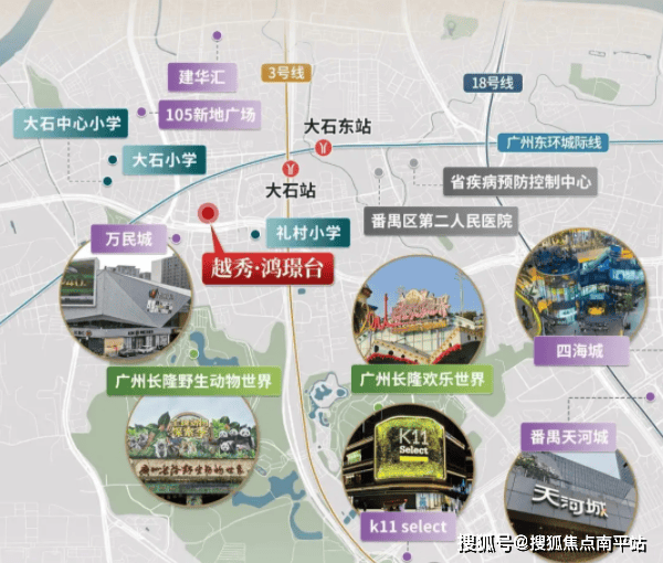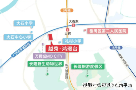 越秀鸿璟台位于番禺区大石街道南大干线北侧,由越秀地产开发建设,2025年10月拿地,目前处于在建状态,预计2027年6月带装修交付。