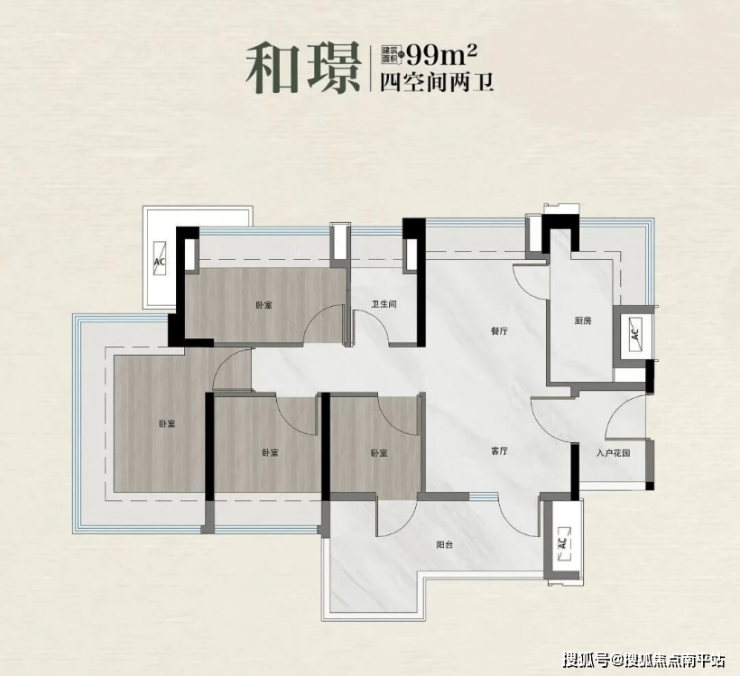 建面99㎡四房两厅两卫是刚需爆款,定价287-300万元,东南向南北对流,4+1房的设计特别灵活