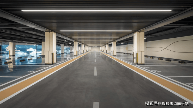 高定品质车位,出入皆欢喜。车库层高约3.65米,车道使用具有硬度高、耐磨性强、防尘抗渗不易老化的固化地坪,耐磨性是环氧地坪的2.5倍,并升级为全车道格栅吊顶,实用与颜值并存。