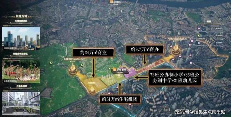 华润置地长隆万博悦府,住宅地块主要分为两期开发,目前一二期均在售,另外还包含了两块商业用地,其中一块配建万象商业,和中小学用地(配建21班幼儿园+72班小学+38班中学),是目前广州在售项目中,为数不多集学铁商的项目之一;