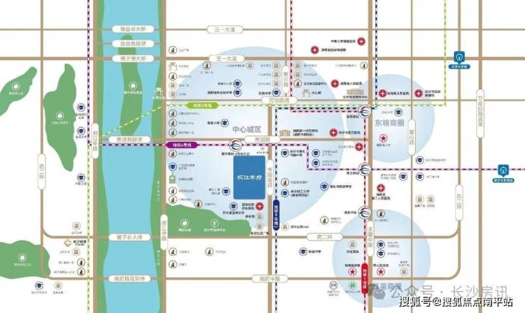 ①三横三纵立体交通网络:劳动西路、南湖路、南二环拉通东西;芙蓉中路、书院路、湘江中路贯穿南北;