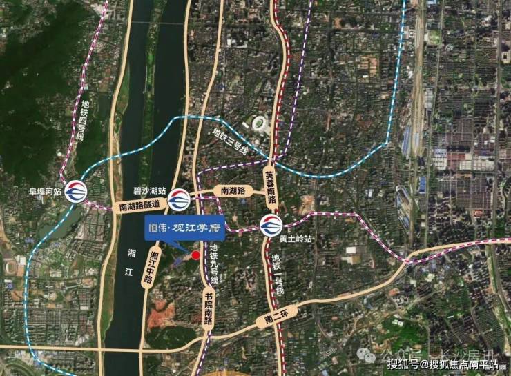 南郊公园、火车头公园、天心滨江公园三大公园环伺,距湘江风光、恰同学少年广场带直线约800米。