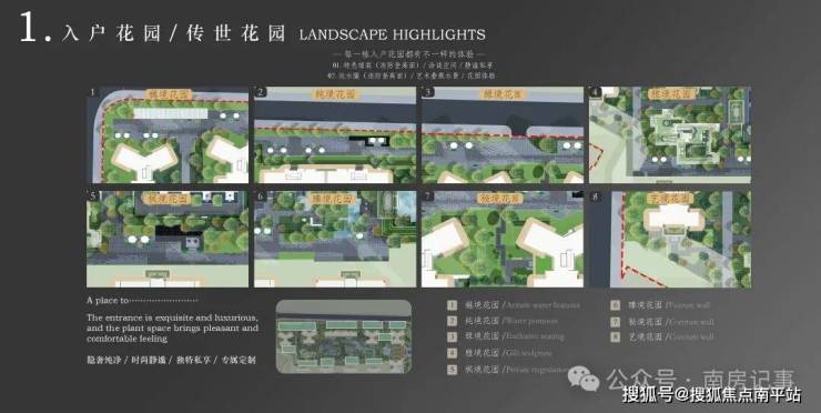 · 入户花园——专属定制的传世花园。每一处花园,营造出不同的花园体验感,盛夏绽放的娇艳色彩,秋冬色彩的斑斓点缀,都是与业主共舞,在自然森系的园区中寻找内心的静谧。