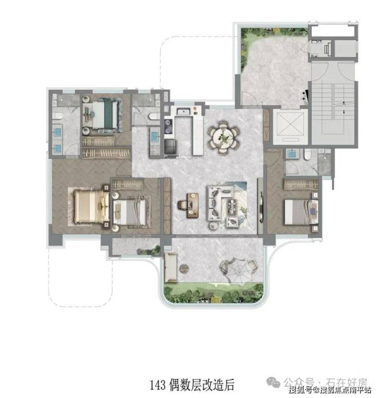 • 143㎡4+1房三卫(边套):改善终极之选,6m超大客厅面宽搭配全景视野,彰显人生格局。综合使用率118%-120%,最大赠送约62㎡,使用面积堪比200㎡大平层,“4+1”可变空间与双套房设计,既能满足家庭聚会的热闹场景,也能保障长辈与子女的独立生活,高赠送带来的“负公摊”优势,让每一分置业成本都物超所值。