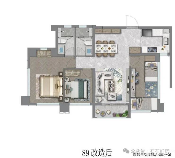 • 89㎡三房两卫(中间户):刚需优选的“空间王者”,四开间朝南搭配三面采光,让客厅、主卧、次卧均能沐浴充足阳光。约90%-93%的高得房率,告别空间浪费,小面积也能实现大舒适,满足三口之家的日常所需与收纳需求。