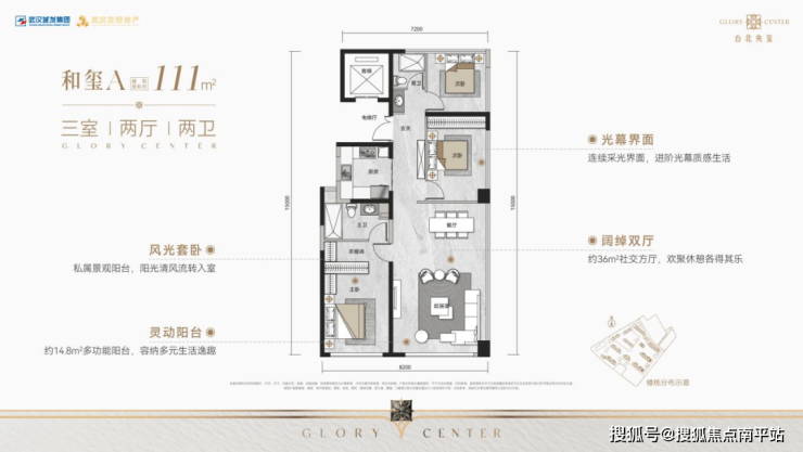 首先来看111㎡边户三房,在寸土寸金的内环市中心,这个面积段的边户三房本就非常稀缺,该户型更创新打造了「270°全景舱」客厅,让入门级改善,拥有豪宅级的生活体验。