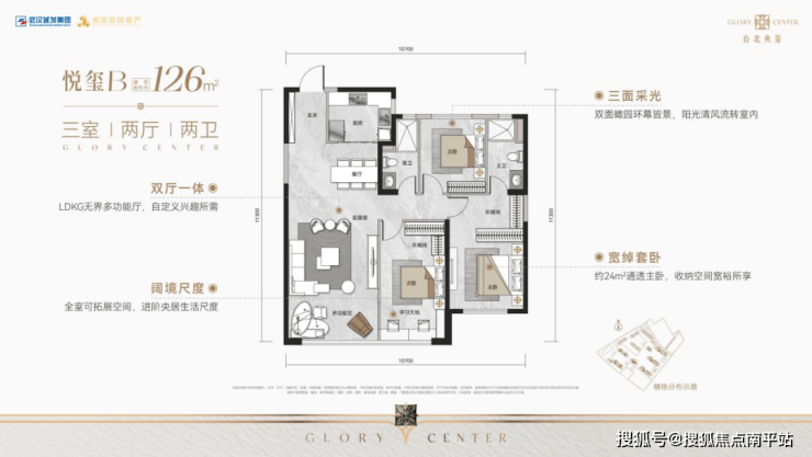台北央玺还打造了 建面约109㎡和126㎡三房,都是两卫和通透套房主卧设计,考虑改善型家庭的品质需求,方正格局、独立入户玄关、LDKG无界多功能厅、三开间朝南、全屋可拓展空间等。多元产品线,为不同阶段的改善家庭提供内环高品质生活的确定性选择。