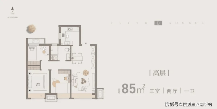 中户85㎡通透三室一卫全明户型,总价310-330万左右