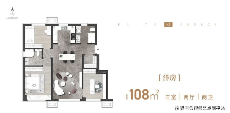 108㎡通透三室两卫全明户型