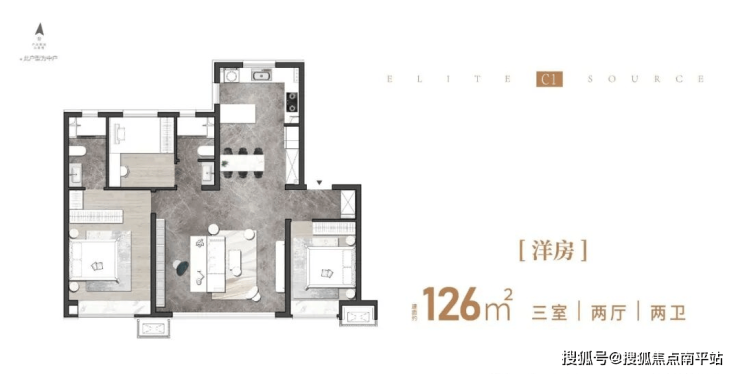 126㎡通透三室两卫全明户型