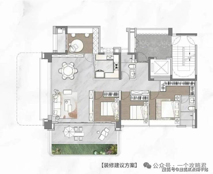 约13㎡独立门厅,约35㎡阔景宽厅,约27㎡主卧套房配超大衣帽间;外接约20㎡空中花园,实际使用面积会比这个更大。