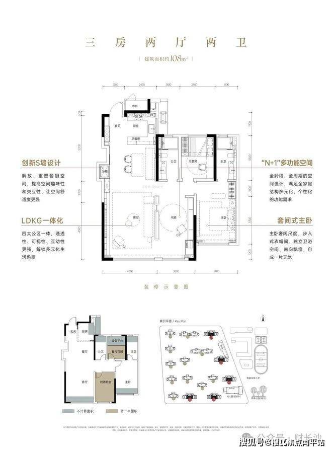 长沙首个S墙设计,4.3m客厅可变7.3m大横厅,在108㎡实现实际享受的空间感与舒适度,堪比以往的120㎡+。