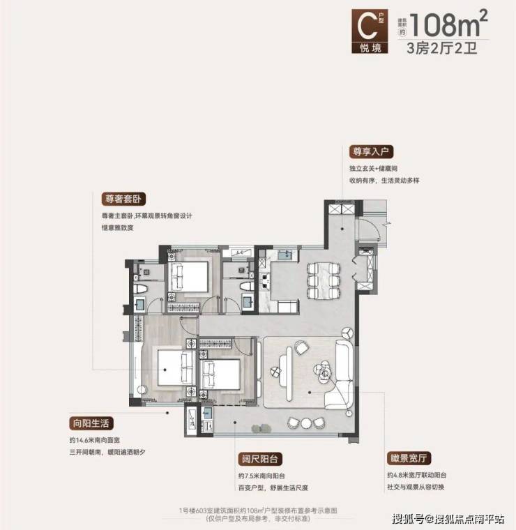 莆田城芯土地寸土寸金,开发商大多规划大户型,小户型本就“一房难求”,边套小户型更是稀缺中的稀缺。联发·嘉悦府1# 楼建筑面积约106-108㎡户型,打破“小户必中户”的常规,做到边套设计,在莆田市场几乎是“独一份”。