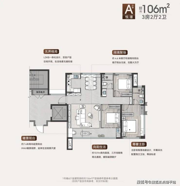 首置青年担心“小户型太拥挤”,联发·嘉悦府用空间设计打破顾虑:1# 楼综合使用率超95%,建筑面积约106-108㎡户型堪比120㎡空间,多出的15㎡能打造专属书房,居家办公不用挤在卧室;约7.4米星空观景台,摆上小茶几、靠椅,晚上能看星星、周末能晒太阳;约4.5米客厅与阳台无梁衔接,朋友来聚会时,客厅能容纳多人聚餐、玩耍,不会显得拥挤,让小户型也能拥有大户型的舒适尺度,满足青年对理想生活的所有想象。