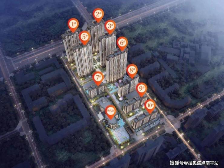项目楼栋呈两列排布,1#、2#、3#、5#、6#为高层;7#、9#、10#为洋房;8#为小高层;