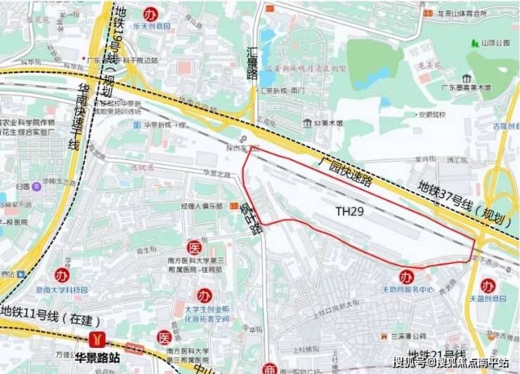 对面为穗深城际石牌站,未来可直达广州东站、增城及深圳东莞,但目前地铁配套较弱,最近的11号线华景路站约3公里。