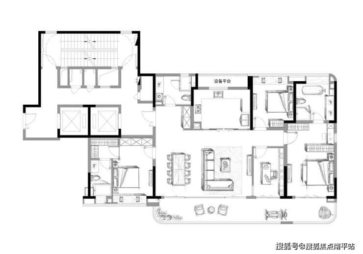 极致洄游公区,营造“家庭平权化”客厅“内容化"社交“共鸣化”居者在举手投足间随时与自然交心。