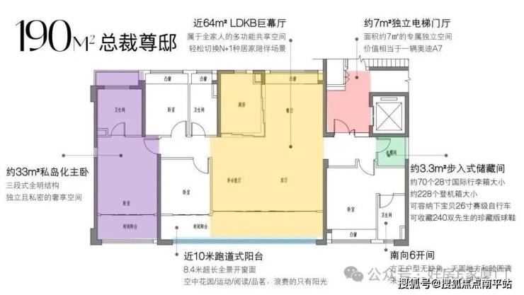 ③约13㎡套房设计,臻享优雅与质感。约3.2m的面宽,接近100%的开窗尺度,站在窗前即可享受到国际化会展CBD的城市界面。