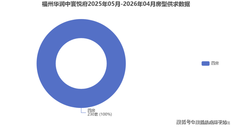 数据解读:根据克而瑞数据,华润中寰悦府 2025 年 5 月 -2026 年 4 月期间,四房户型成交 230 套,占比 100%,供应 344 套,供求比 1.48。项目纯四房定位清晰,完全聚焦改善客群,无小户型干扰,圈层纯粹。