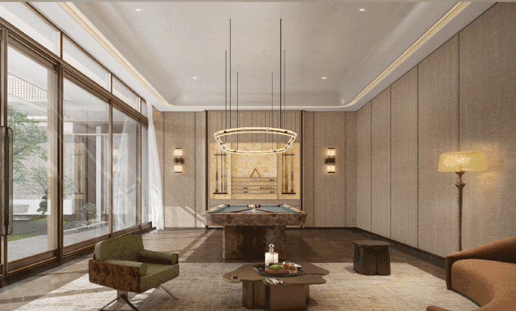 建发·缙湖升级 约1000㎡下沉式私董会所【缙湖荟】,功能更加细致,围绕 家族私宴厅、恒温泳池、艺居品茗,室内网球、台球、棋牌社交等高定空间,实现 “圈层生活” 的私享与纯粹。