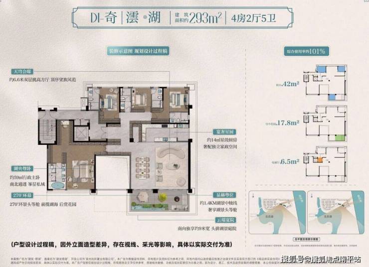 项目超低容积率仅1.4,在楼栋布局上,将 “瞰湖海” 的核心需求前置,首波公布的环湖空中院与湖海四代宅两大产品,于社区右侧环湖而立,近海湾, 既确保最大程度打开正南向瞰湖+环幕海湾视野,又实现了低密纯粹的居住氛围。