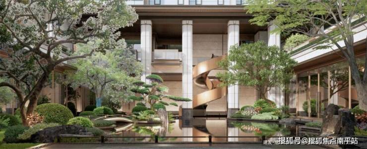 长达约130米五进景观轴,约2300米双层游园步道,层层院落,尊崇归家,搭配廊、亭、桥与艺术雕塑构建景观脉络, 世界羽毛枫、紫薇等珍稀花木点缀,营造步移景异的立体山水画卷。每一处景致的营造都兼顾质感与意境,凝练出 “园中藏园” 的尊崇居住境界。