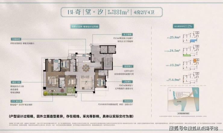 建面约181㎡户型,空间设计上“诚意满满”:出电梯即可解锁 超13㎡电梯厅,尊崇仪式感之上,加码更高效的用梯体验;