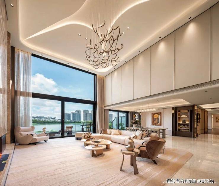 约6.6米双层挑高,打破了传统客厅的空间局限,创造出极具震撼力的视觉效果与空间感受;
