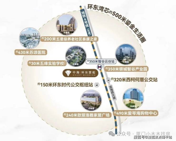 生活便利性更是触手可及:30米即达市属校五缘实验学校同安校区,社区配建公办幼儿园,实现"幼儿园到初中"全龄目送式教育;350米近邻在建地铁6号线智谷云谷站,搭配"三桥四道"路网,轻松融入半小时跨岛生活圈;200米内坐拥爱琴海购物公园与欧丽洛雅家居广场两大综合体,23万㎡商业体量堪比1.5倍岛内万象城。更有430米外的三甲苏颂医院护航健康,900米可达60公里滨海浪漫线,繁华与自然随心切换。