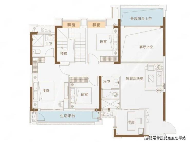 客厅上空搭板,空间利用率更高,也可以直接挑空,更大气。