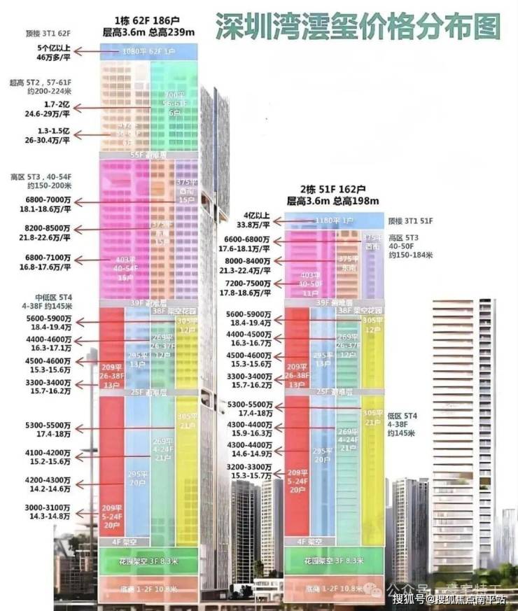 项目预计首推北区1栋(61F)和2栋(51F)约348套,面积段为约209-269-295-305-375-403-500-700-1050㎡