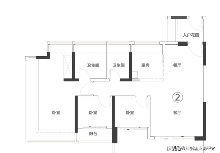 建⾯约 86 ⽅(03/04 户):单边南北对流三房两卫,超 10 ⽶南向采光。