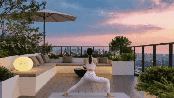 而今天,在 保利·瑧悦让我们惊喜地发现,院子的模样“进化”了。不再局限于传统的地面,而是抬至城市高位,带来了与大自然直接对话的崭新体验。 建面约192-258m²顶复空中墅,将庭院生活搬进空中,户户奢享约47-72m²花园露台,它不仅是居住的场所延续,更是城市高端生活方式的完美呈现。