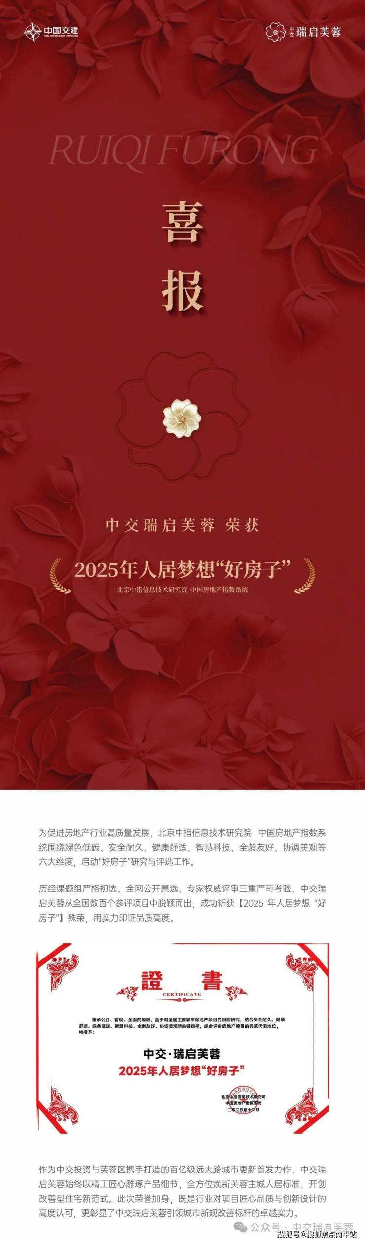中交瑞启芙蓉|荣获“2025人居梦想好房子”