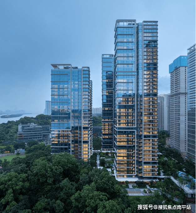 于此,居住者获得的不仅是视野,更是“三重观景层次”的极致体验: 远景是岳麓山的黛色天际线,中景是湘江与橘子洲构成的流动画卷,近景是南郊公园与私家山体的苍翠秘境。