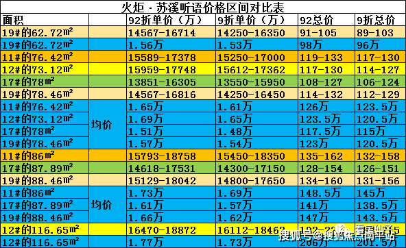 价格可以说是目前厦门商品房中价格最低的一个楼盘,目前带车位9折,不带车位92折,首开楼栋12F、17F、19F,价格如下表↓