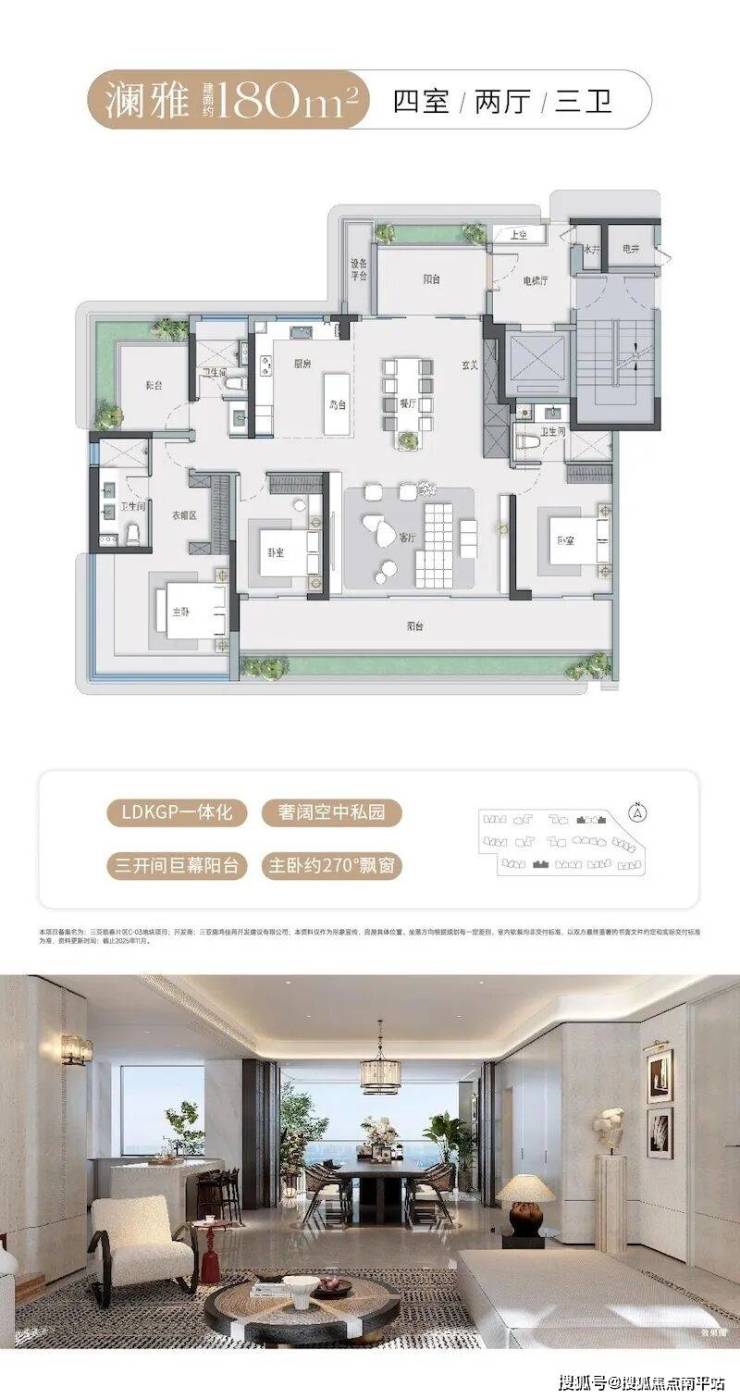 产品设计的核心亮点,当属三亚首发的“建面约132-240㎡浮岛全景舱”。这一创新设计打破了传统户型的局限,通过LDKGP一体化(客餐厨花园阳台一体化)、宽幕奢景阳台、三开间乃至五开间朝南的巨幕面宽等设计,最大化引入自然光线与景观资源。部分户型更配备270°飘窗、环幕式阳台、中西双厨等高端配置,既满足了家庭生活的功能性需求,又彰显了旅居生活的品质感。