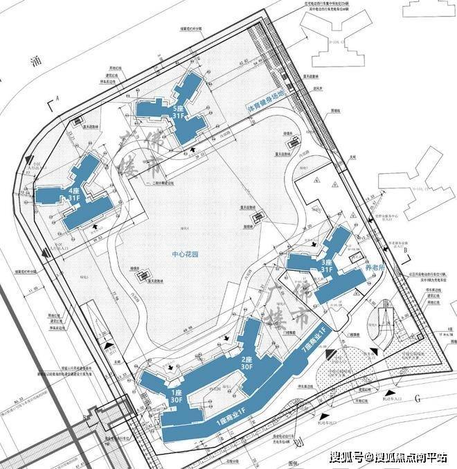 从规划图纸看,项目分一二期,规划5栋住宅,呈围合式布局,1/2座30层高,3-5座31层高,共562套房。还规划有中心园林、体育健身场地、663个车位等配套。