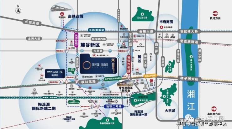 👑3⃣位于梅溪湖二期、麓谷新区、高铁西城三大城市重点开发板块的黄金中轴,坐享三区商业、医疗、教育、交通配套。