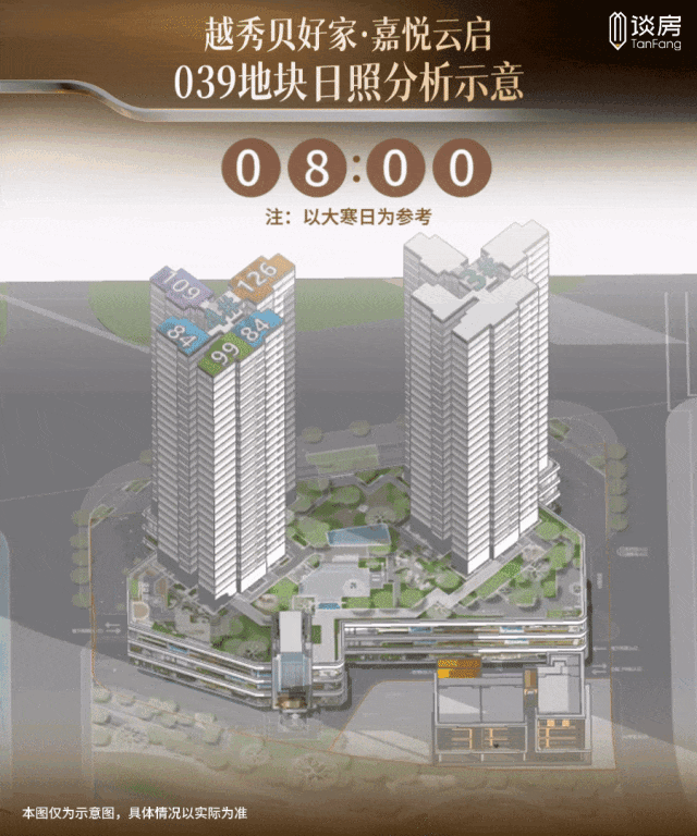 点状式布局,可以令 楼栋南北向通透,多方位引光入室 ,从日照分析上看,项目在大寒日也有很不错的日照时长。