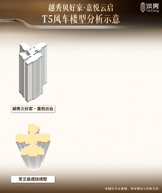 在楼型设计上,项目采用 创新T5风车楼型 , 加上扭转角度,实现了不一样的开阔感。