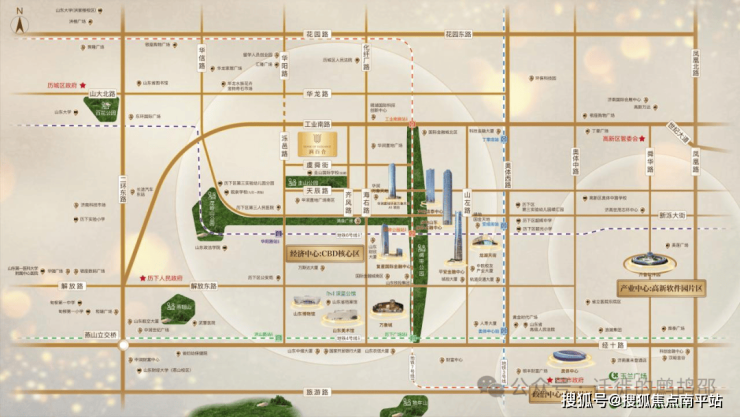 CBD正核心: 项目坐落于济南规划中的3.2平方公里中央商务区正核心,是区域内 唯一在售的新建住宅项目,占据城市发展的最高地。