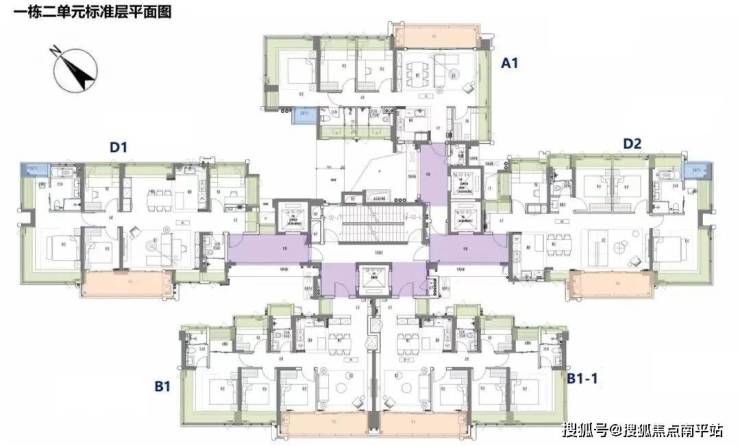 四房南北通,通透度极佳,算是难得一见好户型,美中不足电梯入户、公卫、餐厅跟123平户型一个次卧、一个衣帽间、两个卫生间对视!