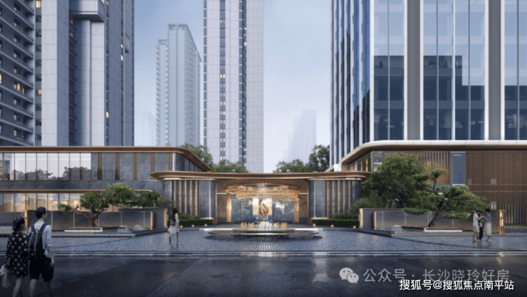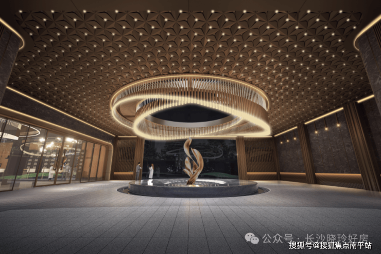 轻盈的DESIGN立面,精研的窗墙比,建筑立面以流动的金色画框,饰以飘逸塔冠,勾勒浏阳河的地标天际线,更从材质、形制、色泽、细节等全方位打磨,矗立为城芯醒目的建筑标签。